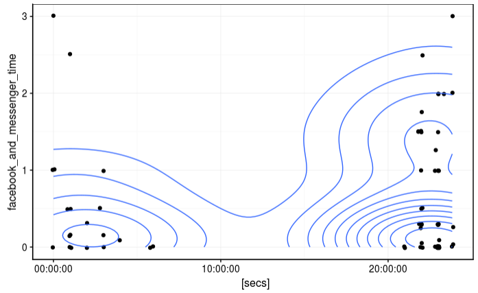 We see absolutely no relation bewteen the facebook usage habits and the bed time it do not seem to exist any relation between these two factors.